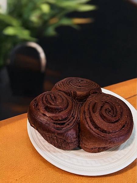 外層是柔軟的可可麵包,裡面夾著滑順的可可醬,拿去回烤一下,外酥內軟的口感超誘人。